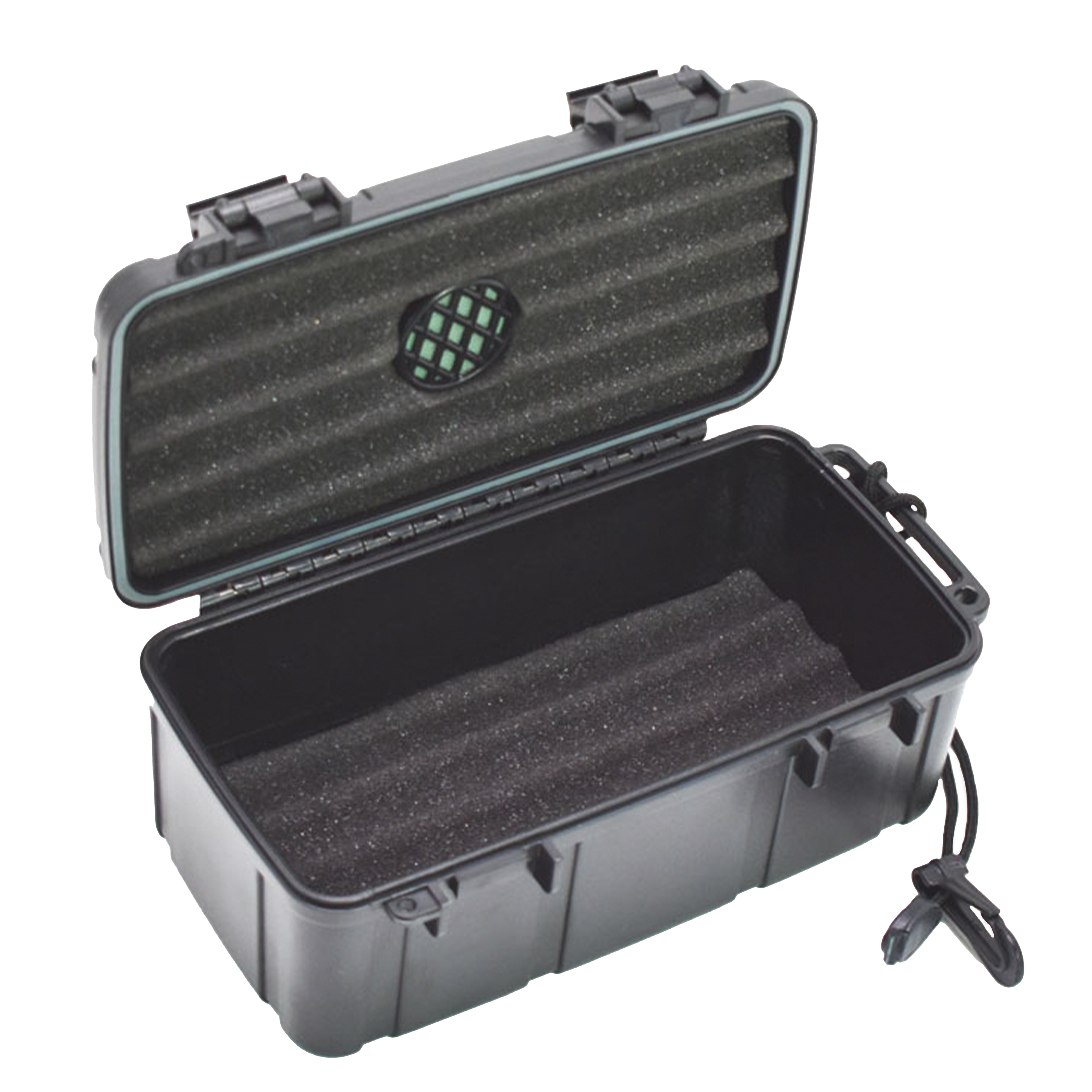 The 10Ct Cigarbox Travel Humidor is your ideal travel companion, combining portability, durability, and reliable humidity control. Whether you're on a short trip or a long journey, this humidor ensures your cigars remain fresh and flavorful. Enjoy peace of mind knowing your cigars are protected and ready to be savored anytime, anywhere.