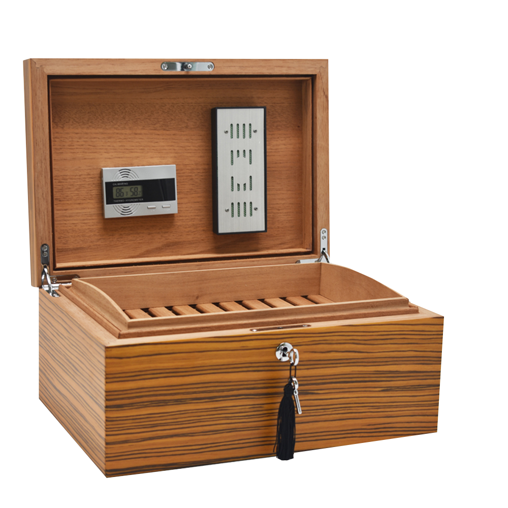 G'day! Check out the 150 Stick Macassar Zebra Humidor with a sleek matte finish. Crafted from premium Macassar ebony, it combines striking zebra stripes with top-notch functionality. With space for up to 150 cigars, it features a precise hygrometer and humidification system to keep your collection in perfect condition. It’s more than storage—it’s a statement piece for any cigar lover. Cheers!