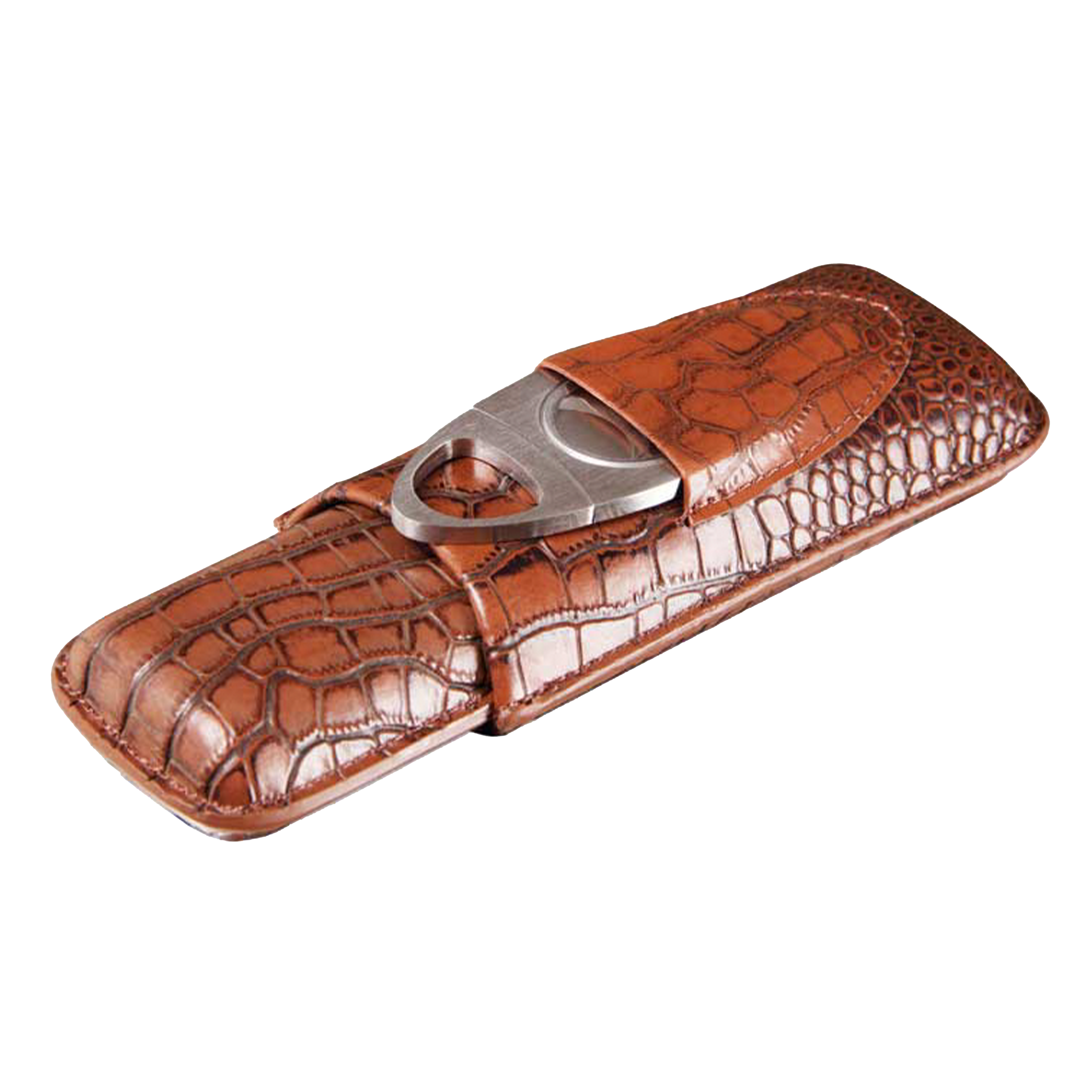 Our 2 Stick Brown Crocodile Leather Case. Crafted for discerning cigar lovers, this luxurious case exudes sophistication with genuine crocodile leather. Not only does it keep your cigars safe and fresh, but it also adds a touch of elegance to your ensemble, making you stand out among aficionados. Whether you're out for a solo smoke or sharing with a mate, this case ensures your cigars are always ready for a top-notch experience.