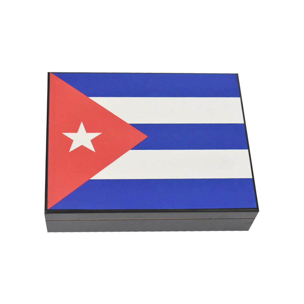 Get ready to up your cigar game with our 20 Stick Humidor, sporting the iconic Cuban flag design. It's the perfect starter humidor for any cigar aficionado. With room for about 20 cigars, it keeps them fresh and ready to smoke with precise humidity control. Compact and sturdy, it's ideal for home or on the go.