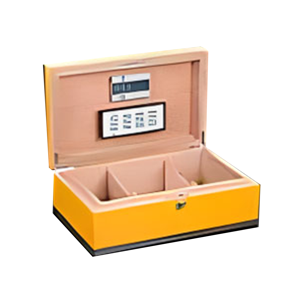 G'day! Meet the 75 Stick Yellow & Black Chequers Trimmed Humidor—a standout piece with a bold design. Featuring a vibrant yellow and black checkered trim, this humidor isn’t just eye-catching but also practical. It holds up to 75 cigars and comes equipped with a reliable hygrometer and humidification system to keep your collection fresh and in top condition. Stylish and functional, it’s perfect for any cigar enthusiast looking to make a statement. Cheers!