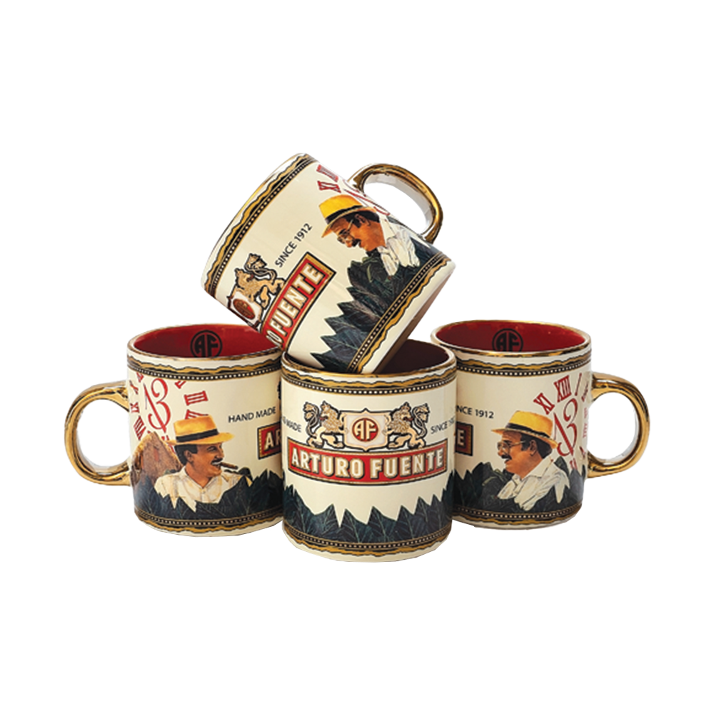Get ready for a sip of sophistication with the Arturo Fuente Ceramic Espresso Cups Set. These cups sport the iconic colors of the Fuente family cigars, featuring the legendary Fuente logo and portraits of Carlos and Carlito Fuente. Elevate your morning ritual with a touch of cigar history in your hands. Don't settle for ordinary - make your coffee breaks legendary!