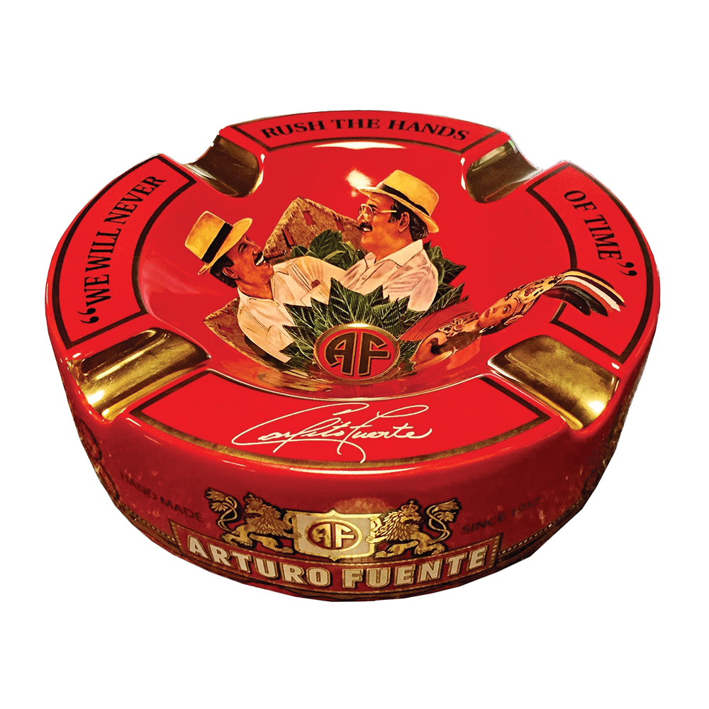 Part of the Fuente Story Collection, finely detailed and made of ceramic, this ashtray comes securely packaged in its own custom gift box. Artwork depicts the Goddess of Tobacco and the 3 generations of Fuente's: Arturo Fuente, Carlos Fuente Sr., and Carlos "Carlito" Fuente Jr.9" in diameter x 2.75" tall4 cigar rests with 2" wellColor: Red