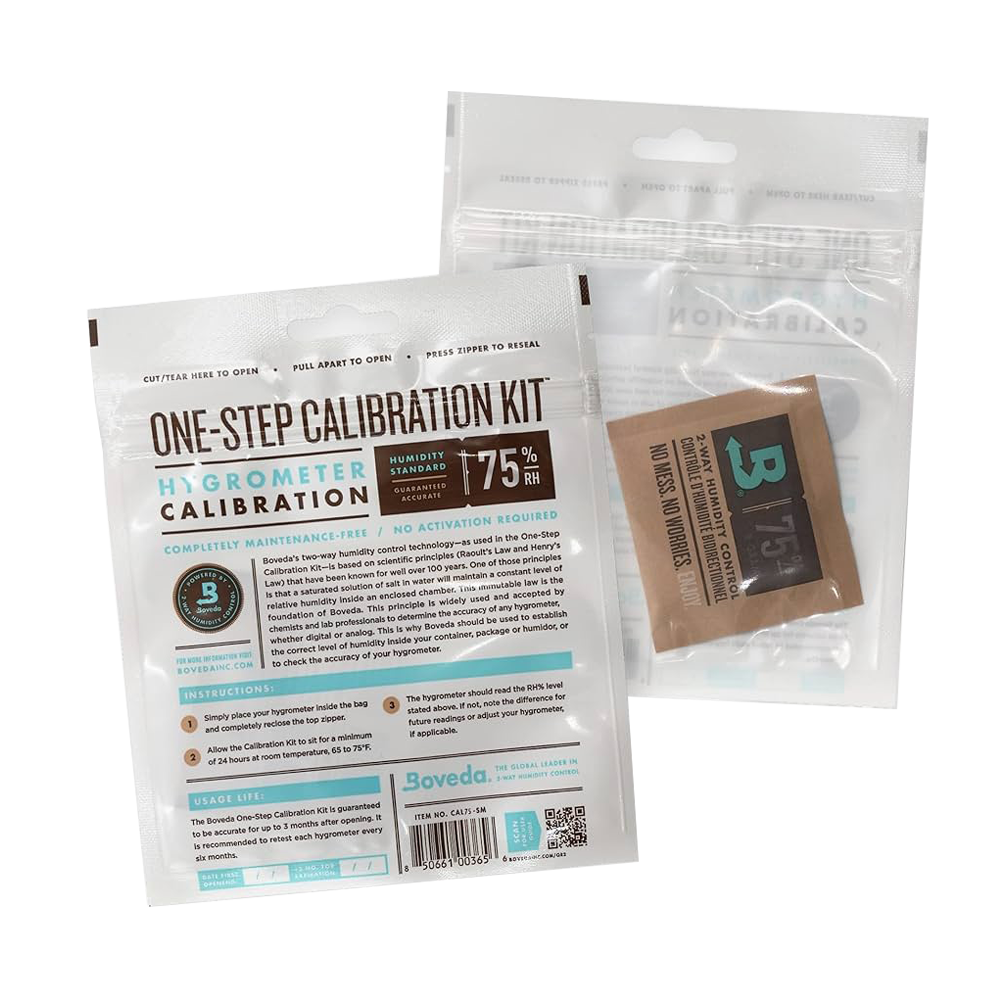 Say goodbye to inaccurate hygrometer readings with the Boveda Small Calibration Kit at 75.5% RH. Keep your premium cigars safe in the optimal 60-72% humidity range. Get an accurate RH reading in just 24 hours and calibrate your hygrometer every six months. Say "ta-ta" to low RH readings and messy salt tests – grab yours now and keep your cigars primo!