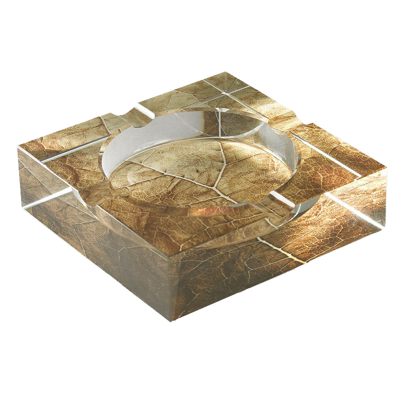 Crystal Ashtray Tobacco Leaf Print, designed to elevate your smoking experience with unmatched elegance and functionality, this ashtray accommodates up to 4 cigars, making it perfect for intimate gatherings or moments of personal indulgence.