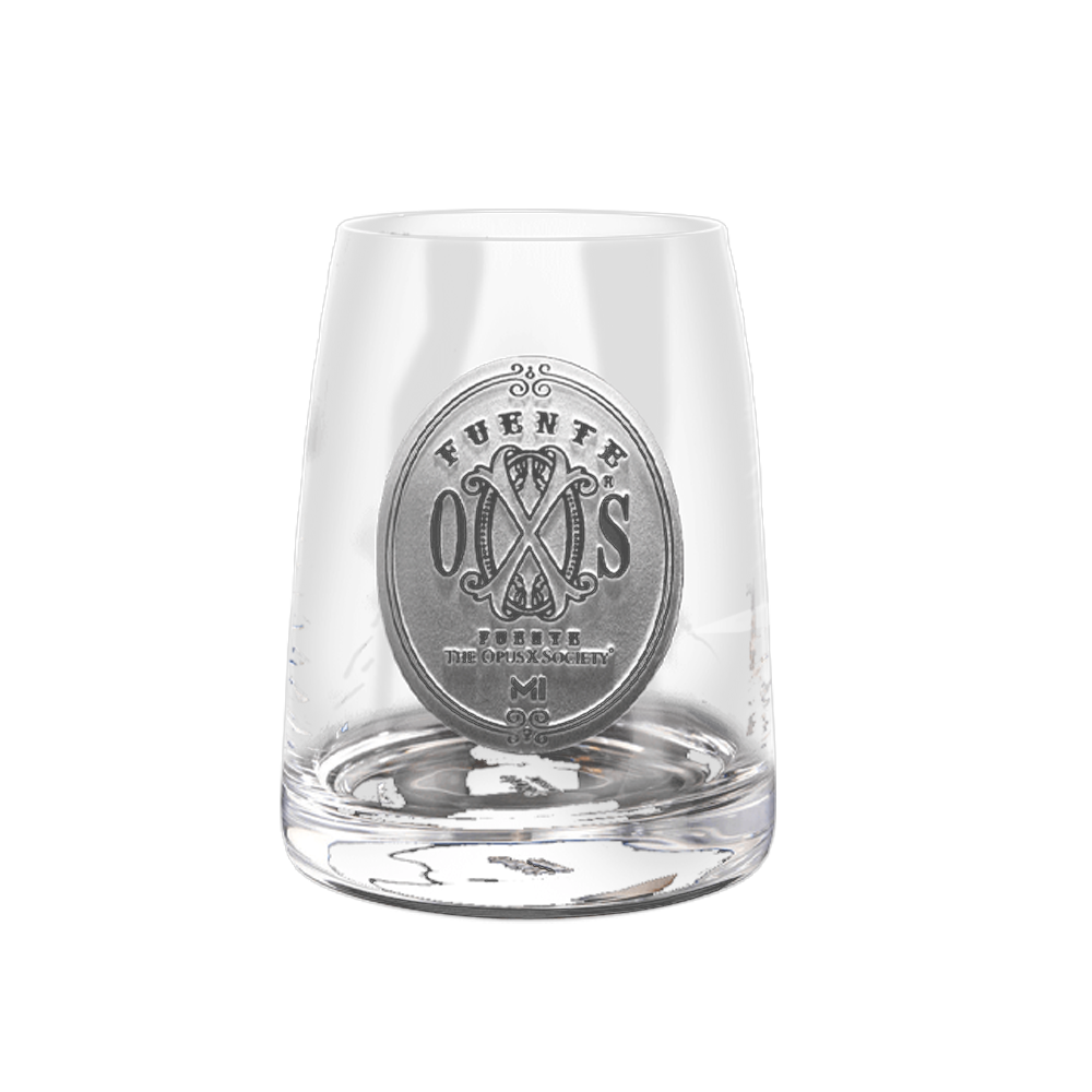 Presenting the Fuente The OpusX Society Rock Glasses - Set of 2! Made of 100% lead-free crystal by Stölzle Lausitz, renowned for over 100 years. Brilliant, breakage-resistant exterior and dishwasher safe. Endures fire tempering for durability. Perfect for cocktails, bourbon, scotch, or whiskey. Deeply engraved by US master carvers. Elevate your drinking experience today!