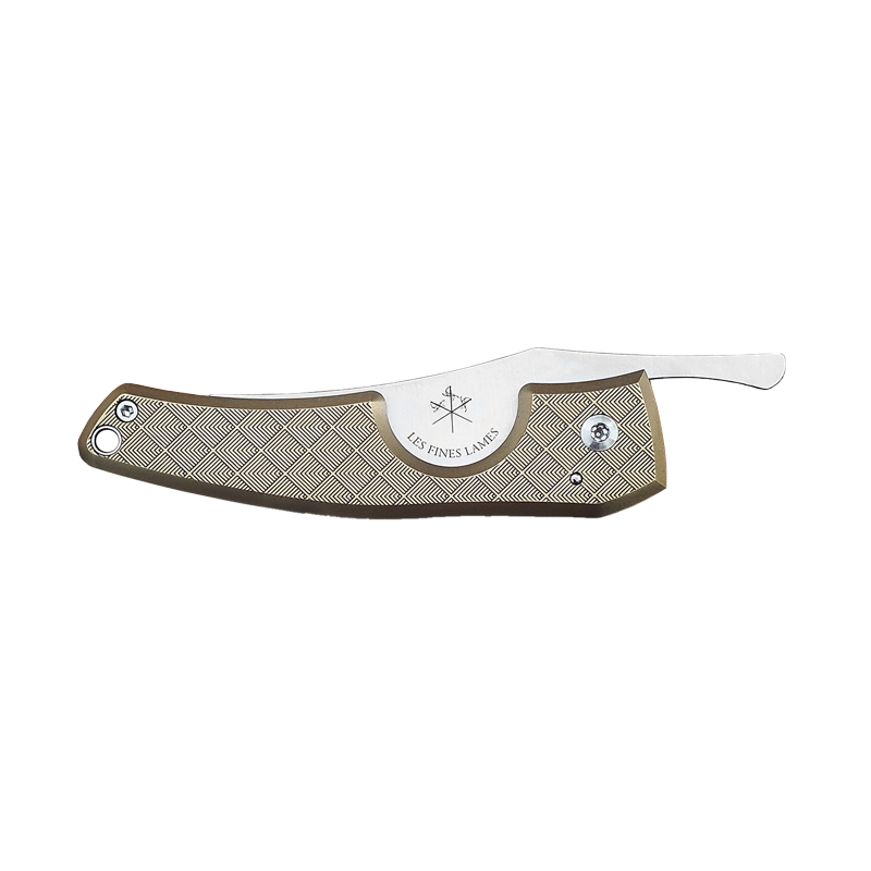 G'day, mate! Meet the Les Fines Lames Cutter Brass Series Leaf - a must-have for cigar lovers. LE PETIT by LES FINES LAMES gives you the cleanest cuts imaginable, with easy one-handed operation. It's designed with a classic lever for simple use, just like those Piedmont Folder Knives. Elevate your cigar experience with this stylish and functional cutter. Get yours now and enjoy perfect cuts every time!