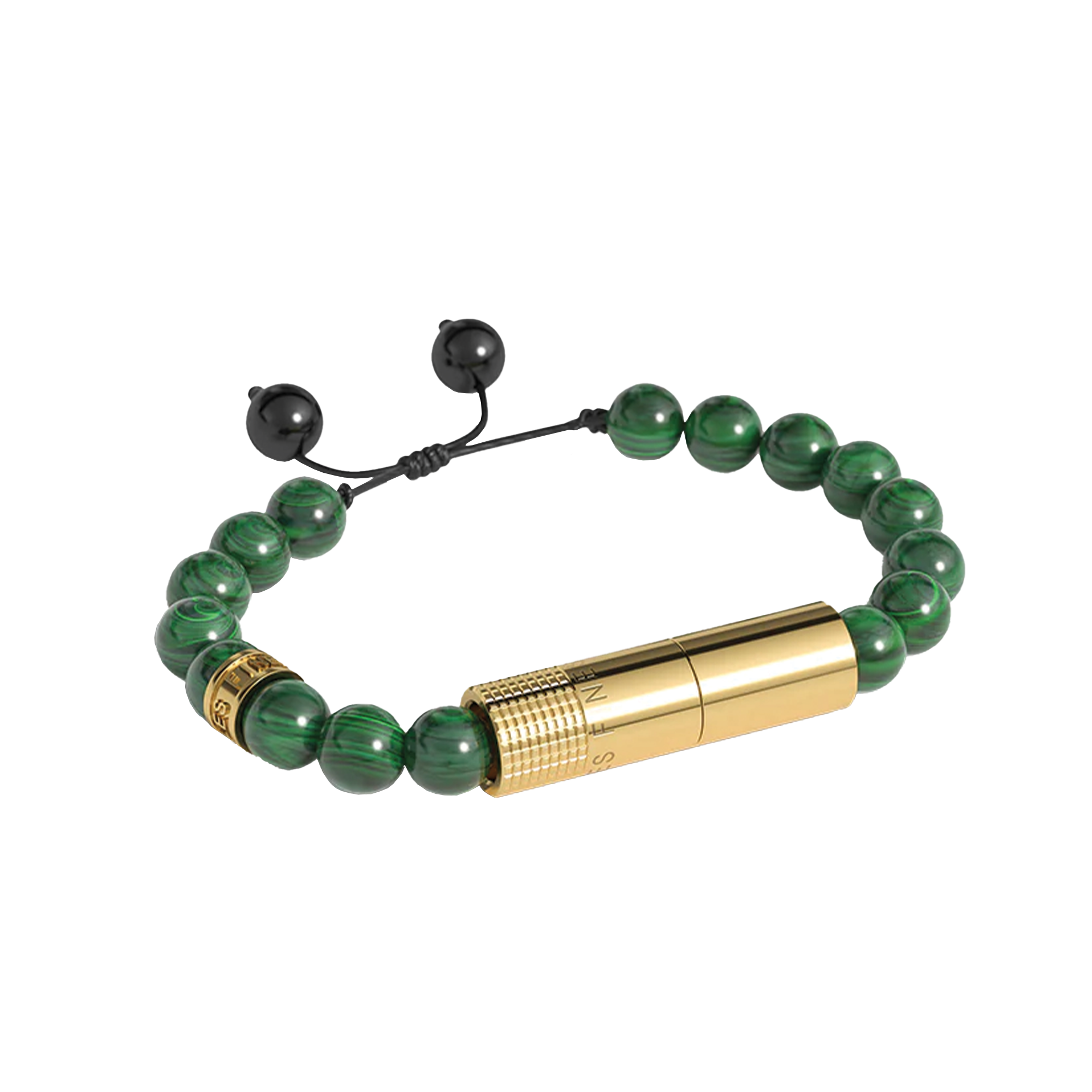 The 8mm Malachite beads complemented by the sparkle of Gold on the Punch and spacer makes this piece truly unique and precious.