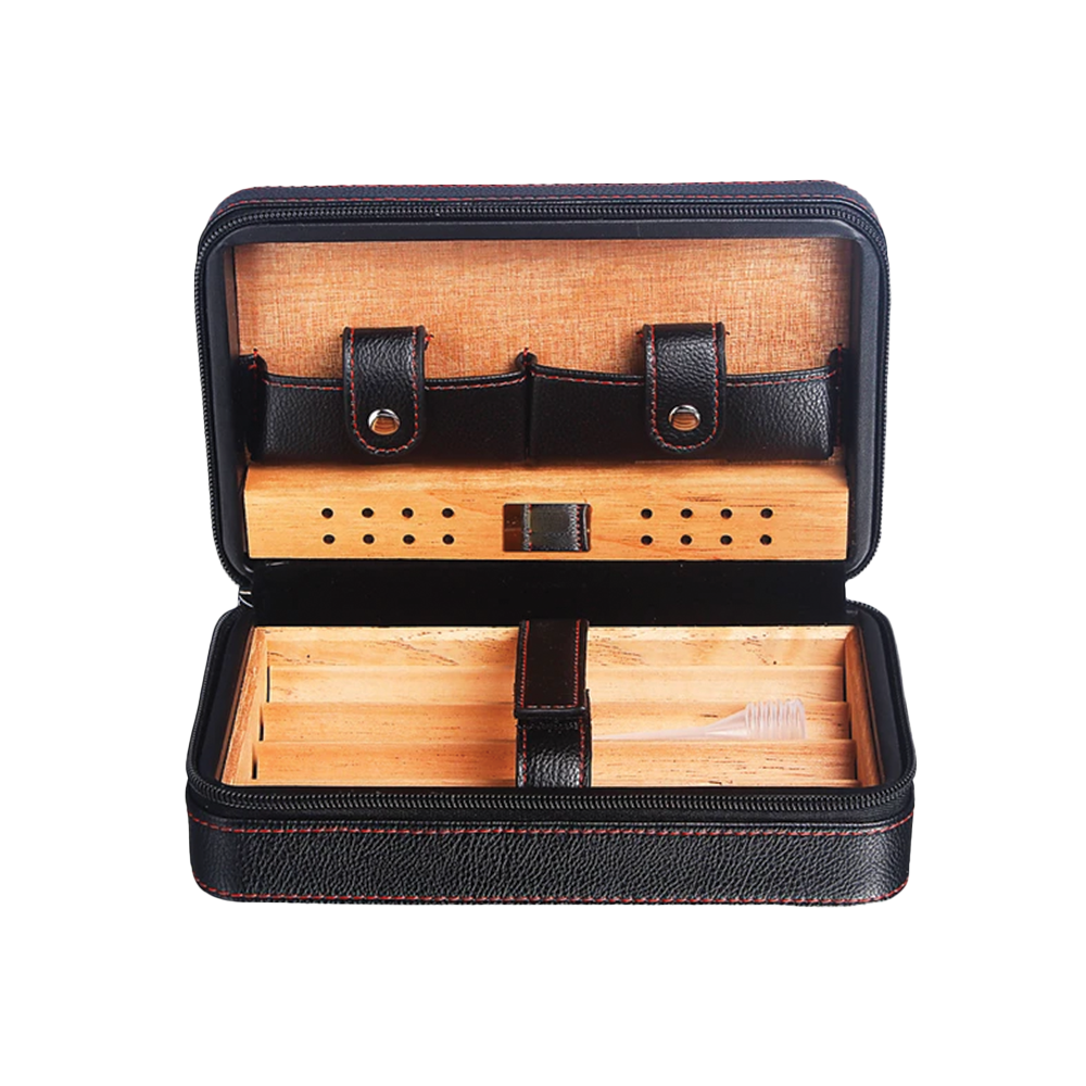 G'day mates! Take your cigars on an adventure with the My Father Premium Leather 4 Stick Travel Humidor. Crafted with a clean, cedar-lined interior, it snugly holds 4 cigars for the ultimate protection on the go. Adorned with the iconic My Father Cigars logo on its stylish faux leather finish, it's a must-have for any cigar enthusiast seeking both sophistication and functionality. Travel in style and keep your cigars safe with this classy humidor!