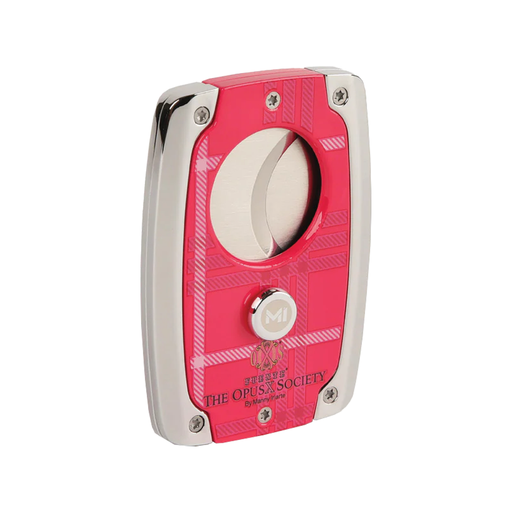 Hey cigar lovers, introducing the Rosé OpusX Society by Manny Iriarte C30 Cutter—a beauty in vibrant colours and bold design. Its visually arresting pink design makes a statement and sparks conversations. With a slick finish and perfect fit, it's ideal for your favorite cigars. Pink is where it's at—grab yours now and make a statement with every cut!
