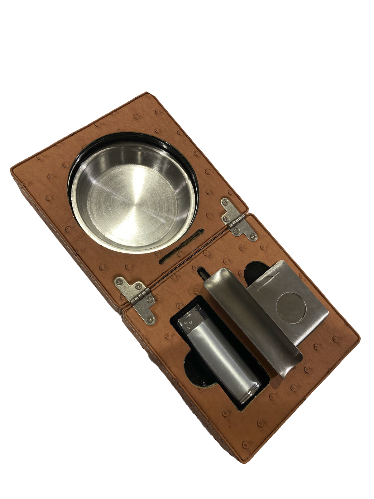 Designed with the discerning smoker in mind, the set includes all essentials for enjoying your cigars or cigarettes while traveling. It features a compact case that securely holds your smoking accessories, including space for lighters, cutters, and a few of your favorite cigars.