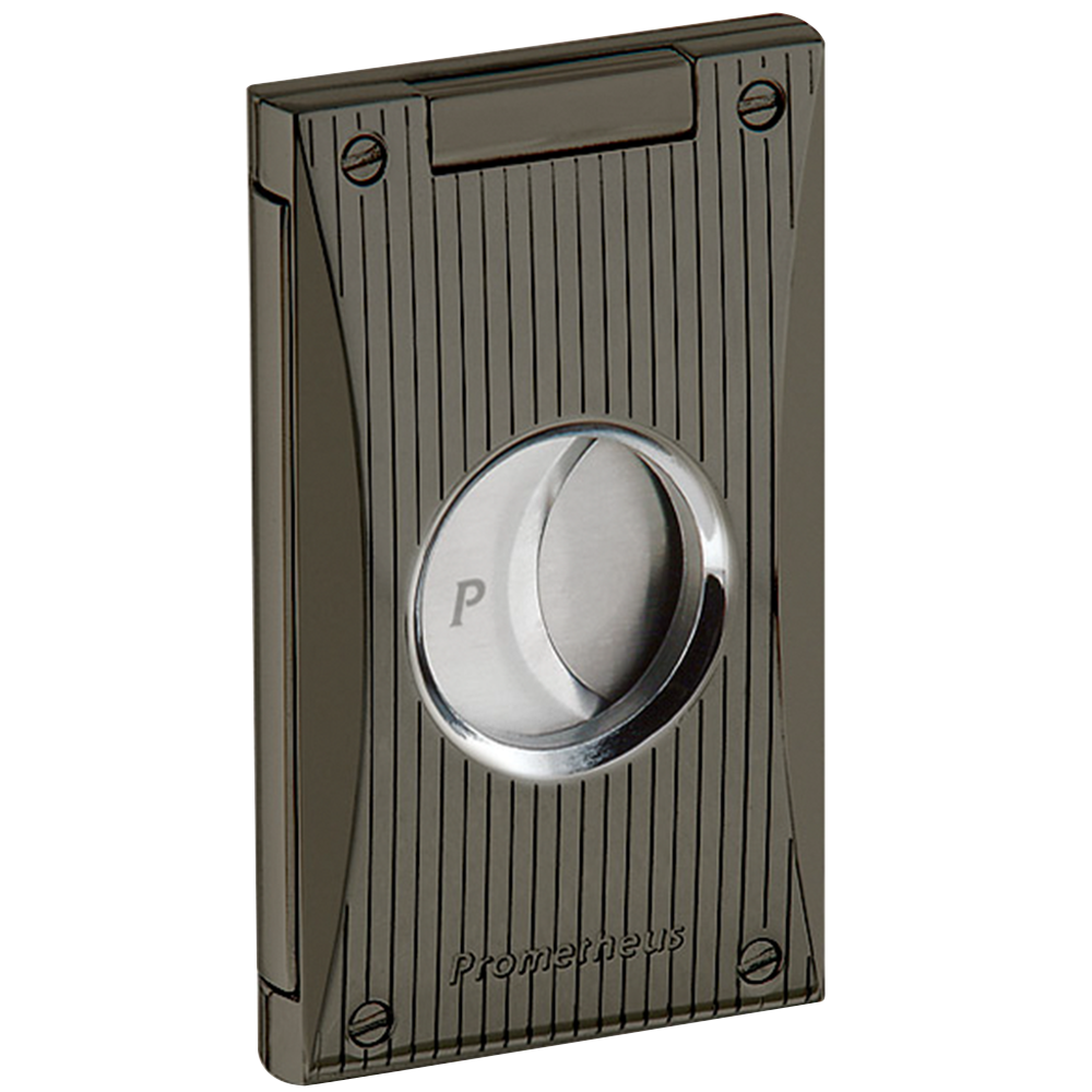 Feast your eyes on the Prometheus Cutter H Gun Metal Vertical Lines Cutter – a game-changer for cigar aficionados. Sleek Gun Metal finish, flawless cuts every time. Elevate your cigar game with style and precision. Don't settle for less – make every puff count with this masterpiece. Grab yours now and step up your cigar experience.