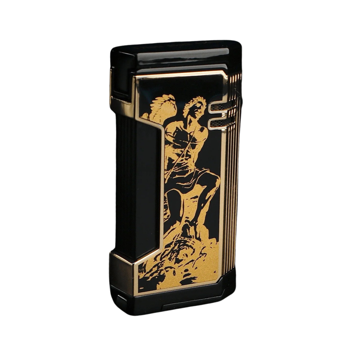Hey there! The Magma X Gold on Black delivers sleek design with a triple-torch flame, measuring 3.6" × 2.8" × 0.94" (90 × 55 × 24 mm). A limited-edition 2024 piece you’ll treasure.