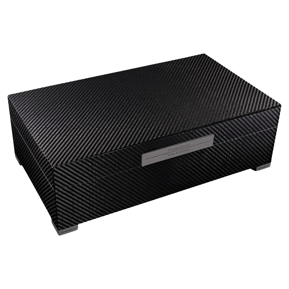 Elevate your cigar collection with the Prometheus Platinum Series Carbon Fiber 150 Cigar Humidor. Crafted in France with exotic veneers, this premium humidor combines elegance with function. It features the advanced Prometheus Optima humidifier and Hygro 3 digital hygrometer, ensuring your 150 cigars are kept in optimal condition. Perfect for the connoisseur who demands excellence in every puff, this flagship humidor is a masterpiece in cigar preservation.