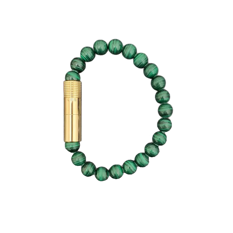 Elevate your style with the Les Fines Lames Punch Bracelet GOLD MALACHITE 8mm Large, radiating opulence and empowering confidence. Handcrafted with genuine Malachite gemstones and 18K gold plating, it transitions seamlessly from day to night, offering versatile elegance for any occasion. Invest in this timeless piece that embodies sophistication and individuality, making a statement that resonates through generations. Secure yours now and redefine luxury.