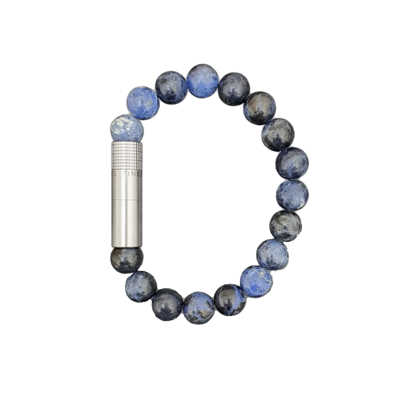 Boost your style with the Les Fines Lames Punch Bracelet in Steel Sodalite—a standout accessory that's both stylish and practical. This precision-crafted bracelet is more than a trinket; it's a statement piece featuring a 10mm large steel sodalite that doubles as a cigar punch. Ideal for any barbie with mates, it ensures you're always ready for a premium smoke.