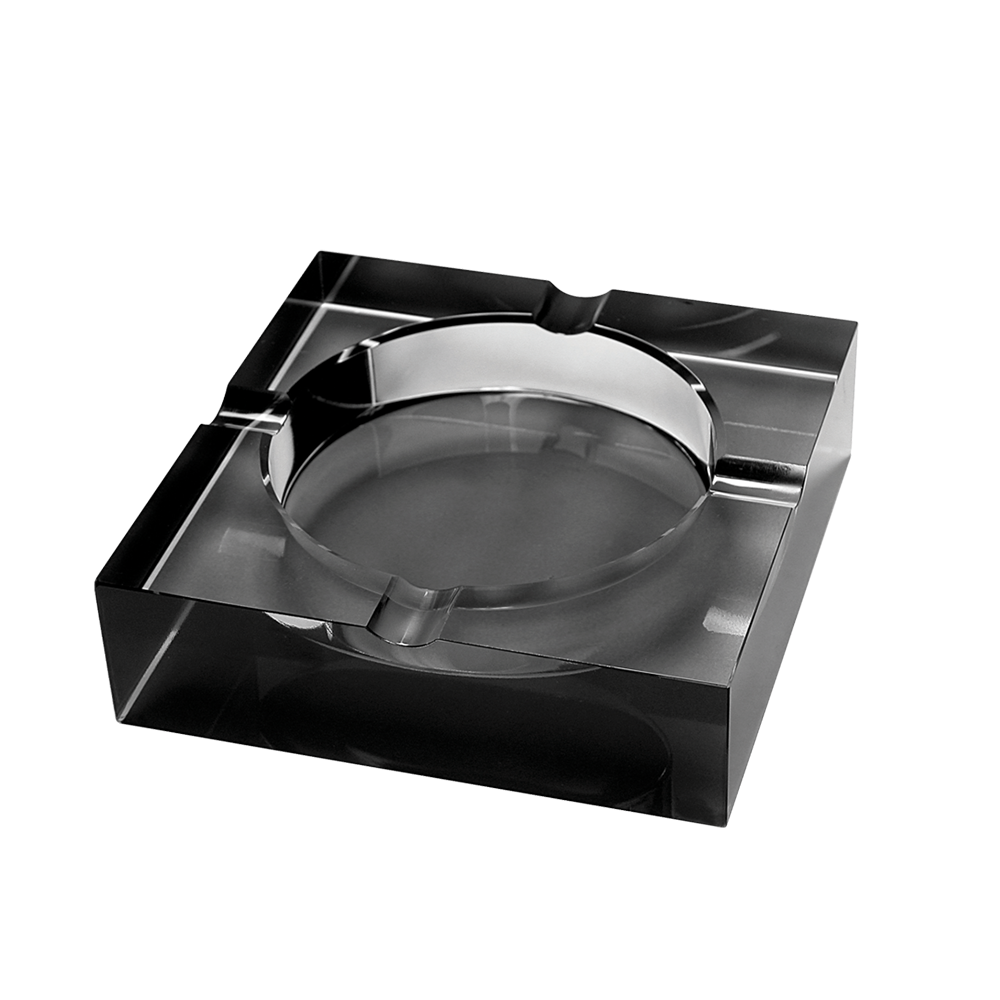 Get your hands on the Quality Importers Square Crystal 4-Cigar Ashtray – it's a must-have for cigar lovers. Crafted from semi-transparent black tinted K9 crystal, it exudes a subdued and distinguished appearance. With a large receptacle for ash, it's perfect for enjoying cigars with mates without the mess.