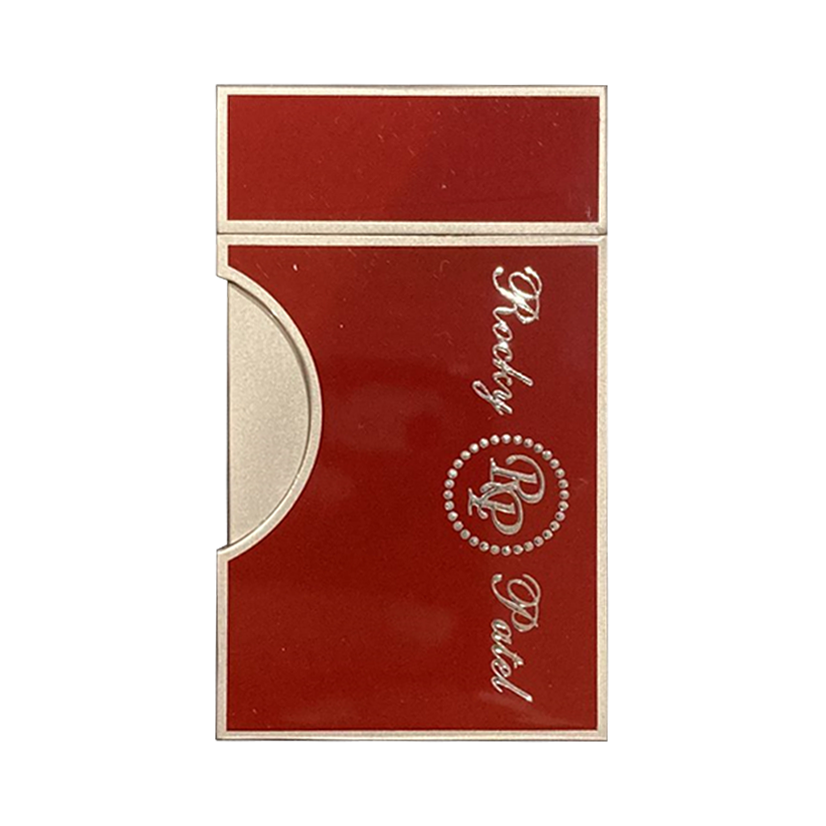 Introducing the Rocky Patel Crest Lighter in Burgundy & Gunmetal, a game-changer in the cigar world. With a single solid flame torch, it promises precision and power for the perfect light every time. Plus, it's packed with convenient features like a circular fuel window, adjustable flame, and side-action ignition.