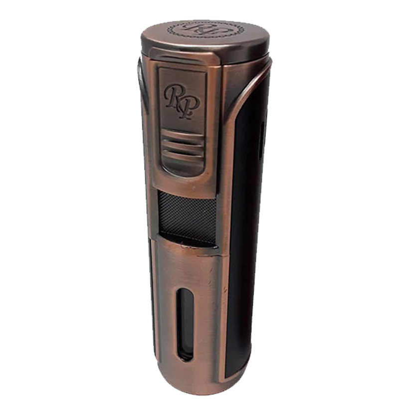 Introducing the Rocky Patel Envoy Lighter in Copper & Black! It boasts five powerful blue-flame jets for effortless lighting. Enjoy the convenience of a built-in punch cutter and a fuel tank window. Backed by a lifetime warranty, it's a must-have for any cigar aficionado.